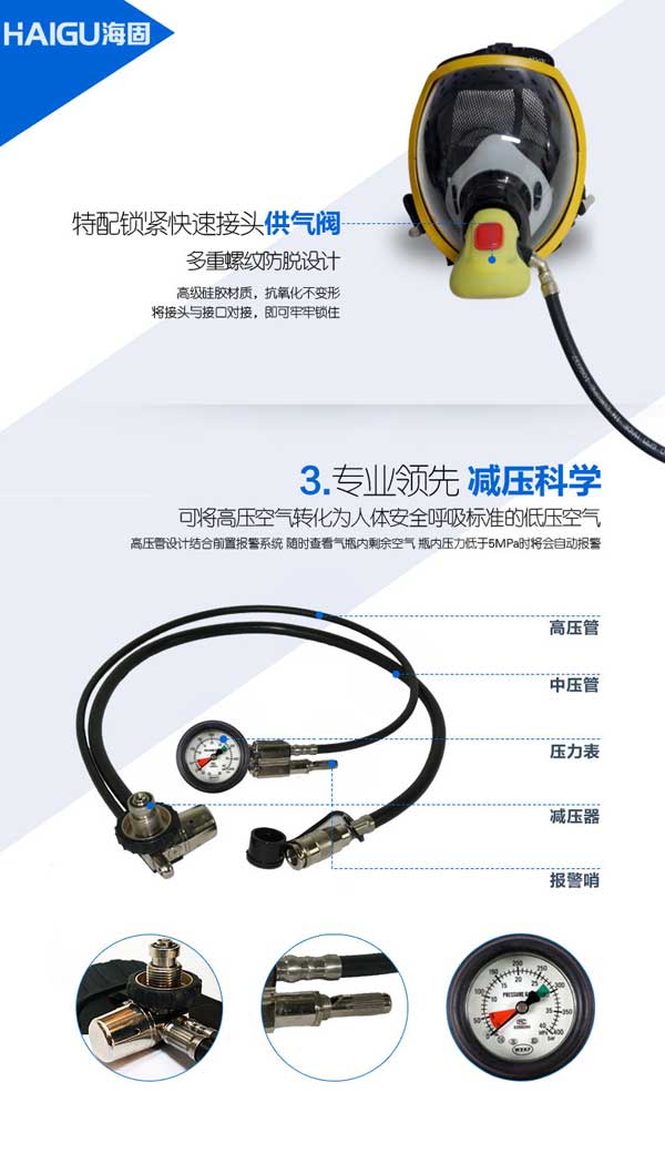 海固RHZKF6.8/30正壓式消防空氣呼吸器為自給開放式空氣呼吸器,可以使消防人員和搶險救護人員在進行滅火戰(zhàn)斗或搶險救援時防止吸入有毒有害氣體、粉塵顆粒物,也可在化學(xué)品事故泄漏、化工、石油、冷庫、船舶、冶煉、電力、實驗室、礦山、燃氣開采運輸?shù)热毖醐h(huán)境中使用,從而有效地進行滅火、搶險救災(zāi)救護和特種勞動作業(yè)。